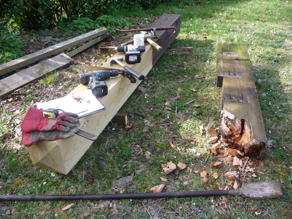 4. The old rotting post laid alongside the brand new replacement.