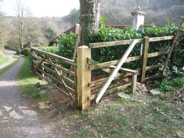 5. The new post seated in the ground with the gate attached.