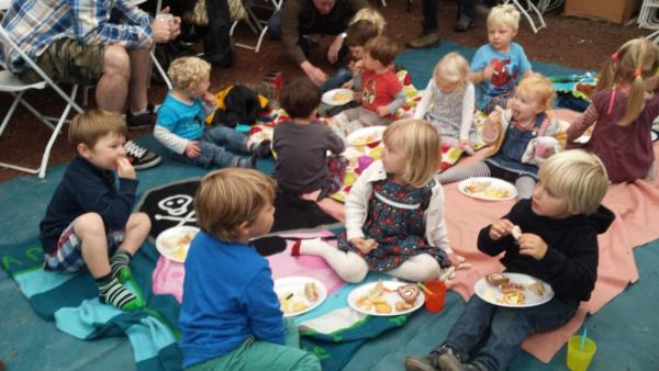 1. Tucking into the party food...