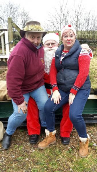 1. Santa arrives at Woody Bay to be greeted by Claire Jeans, Judy Williams and Mel Maddocks.