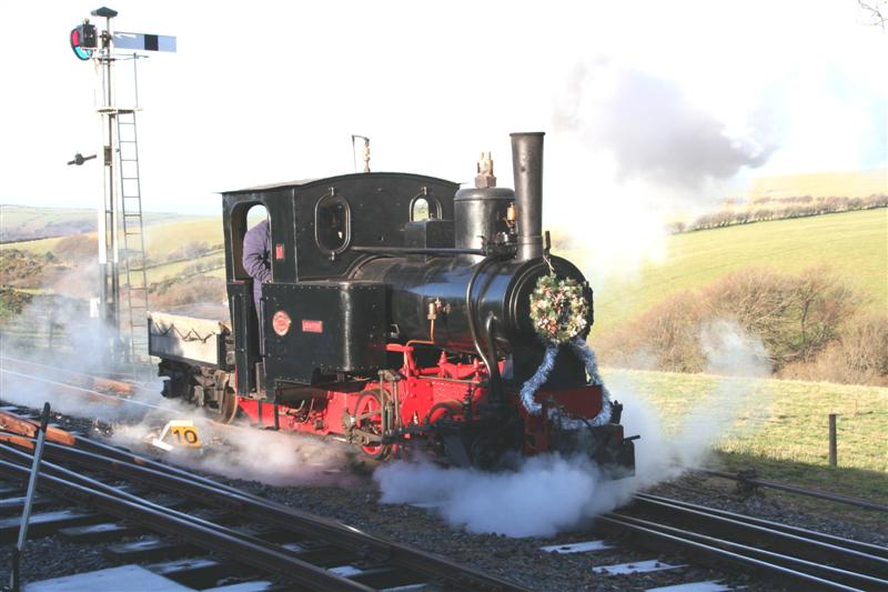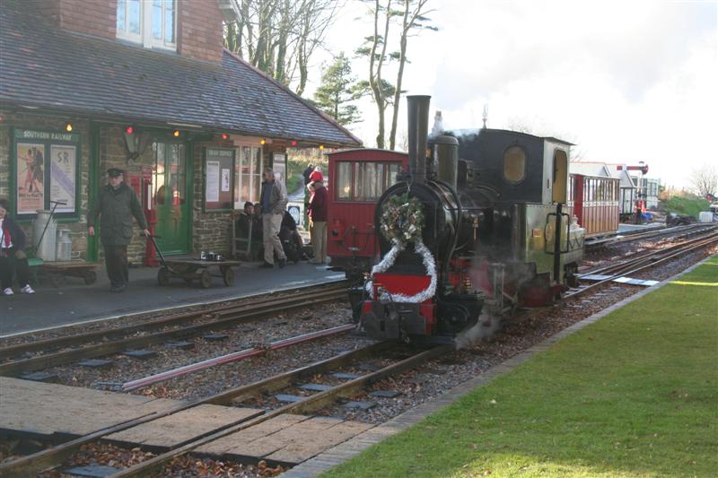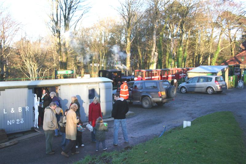 The second day of the 2008 Santa Specials season saw bright, sunny, cold weather at Woody Bay today. The trains were operated by steam locomotive Jung 0-4-0WT 'Justine' currently on loan from the North Gloucester Narrow Gauge Railway at Toddington. Santa was kept busy all day as a steady stream of children and their families visited him in the festively decorated Van 23 serving as 'Santa's Grotto'.
