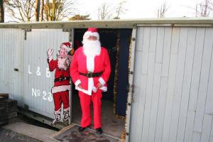 2. Justine leaves shed, decorated for the Santa Specials
