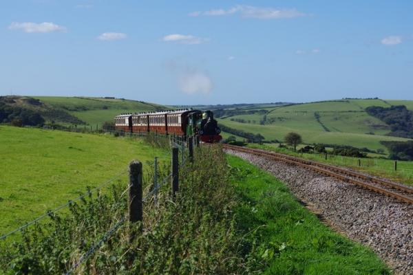 3. BLANCHE with the heritage train heads back to Woody Bay.
