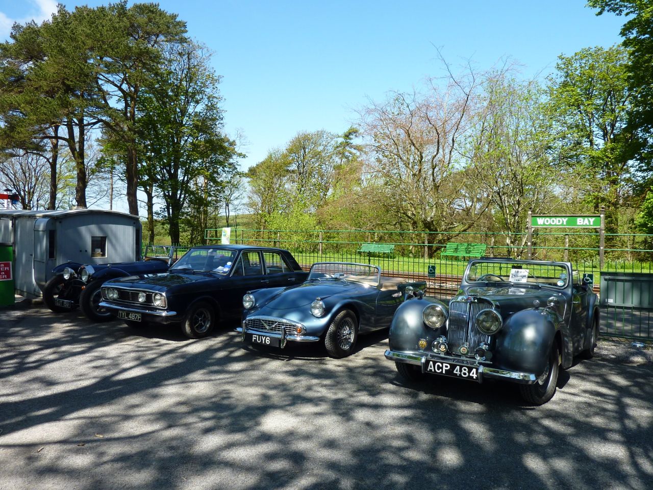 First photo of the weekend from Fred Westaway. A Bugatti Roadster, Ford Cortina 1600E, Daimler Dart and a Triumph Roadster are all lined up in the spring sunshine.