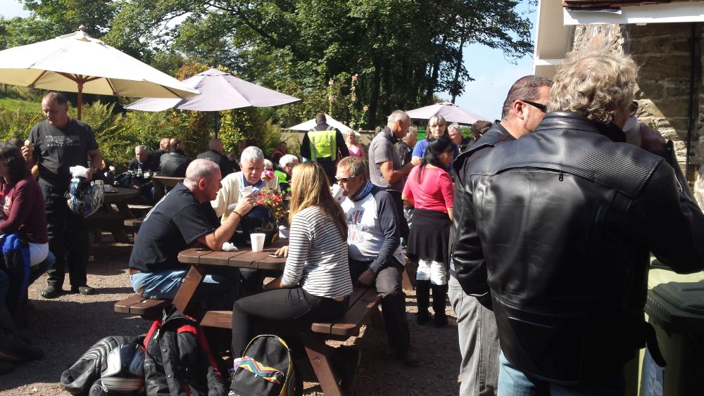 5. Bikers enjoying the hospitality ay Woody Bay.