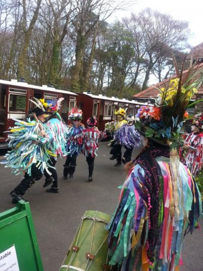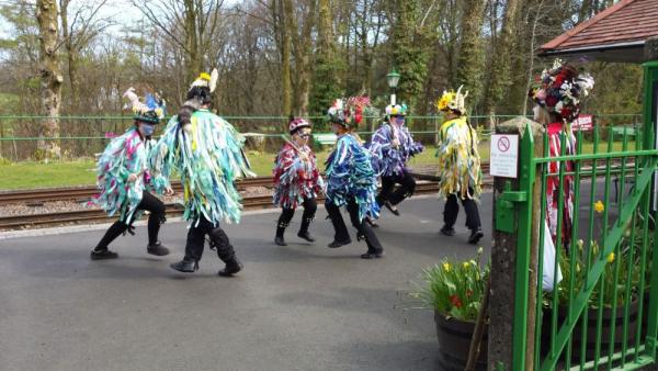The Angletwitch Morris entertaining a visiting coach of railway enthusiasts. Photo: Debbs Harding