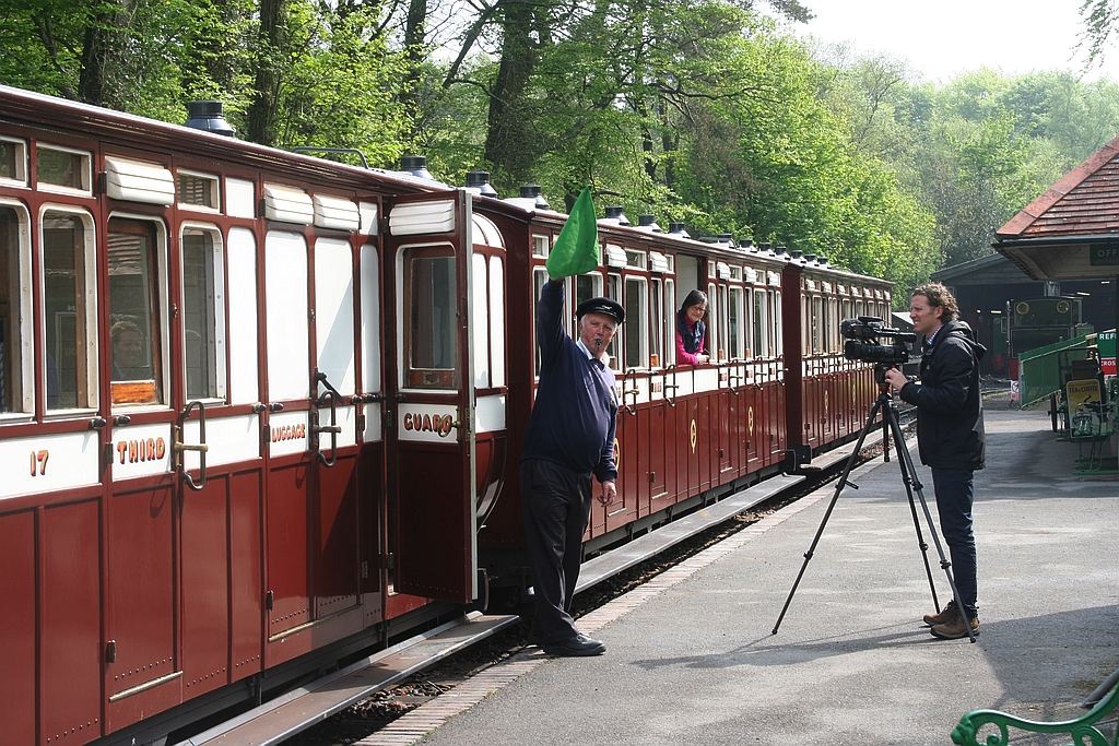 1. Kirk England of the BBC Spotlight team filming at Woody Bay yesterday morning. Guard Bob Ayres in characteristic pose.