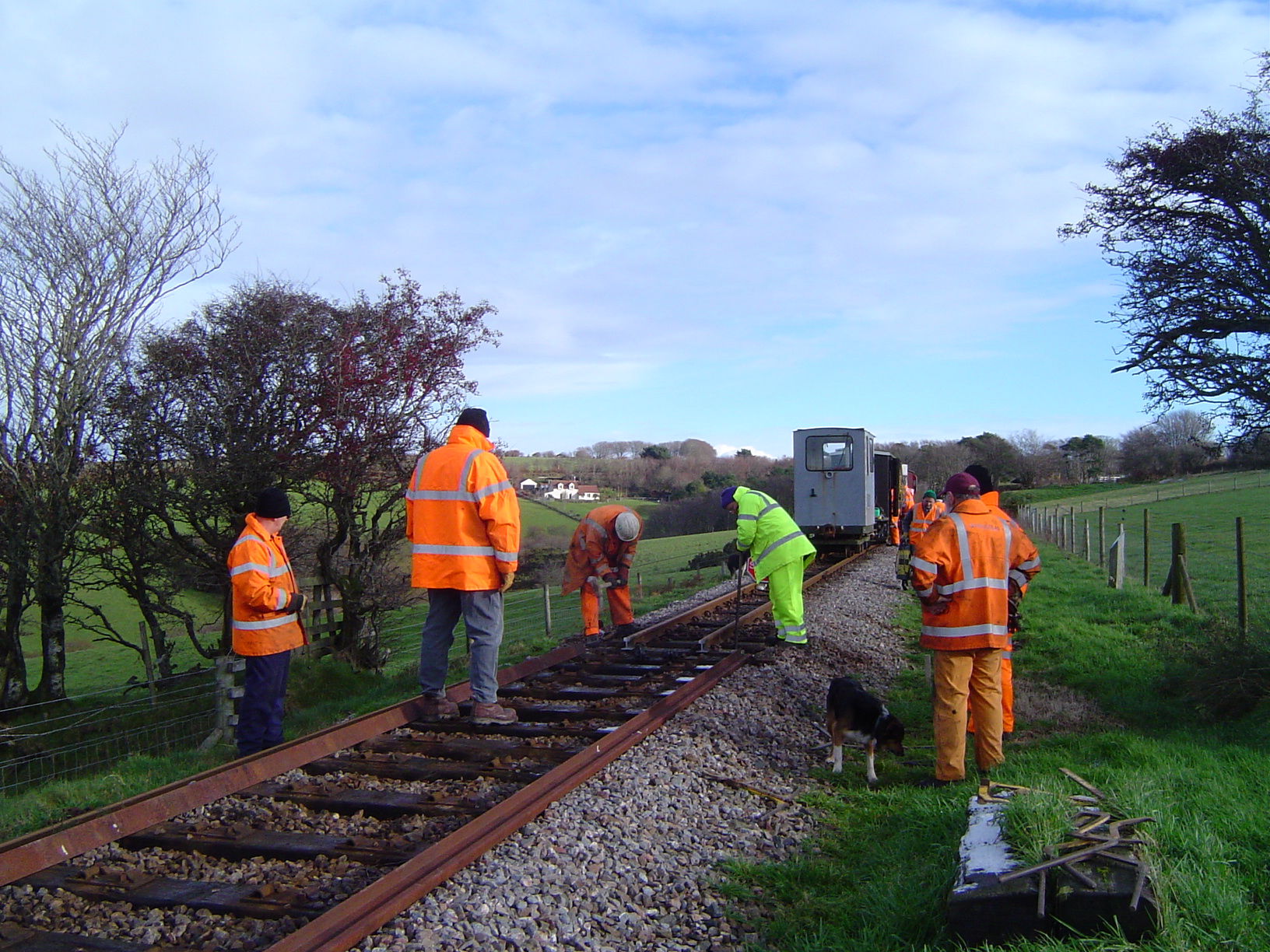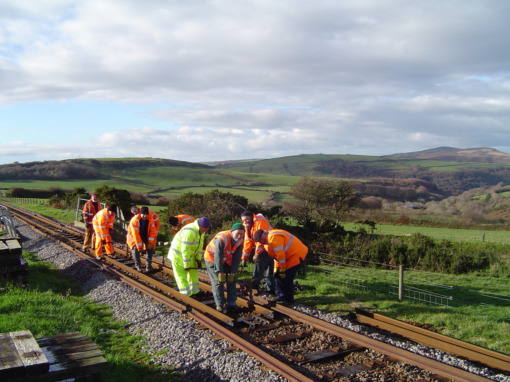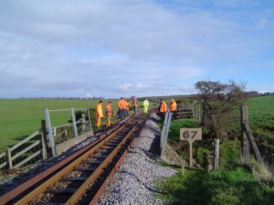 14.The track-lifting party, including several of our friends from the Isle of Wight Steam Railway, arrive at Bridge 67.