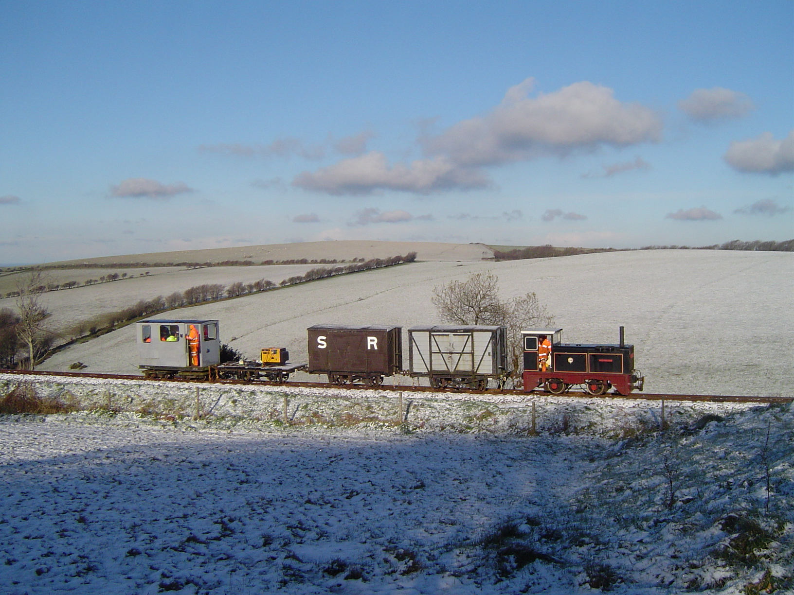 1. The works train, propelled by HEDDON HALL, takes the team down the line to start work for the day.