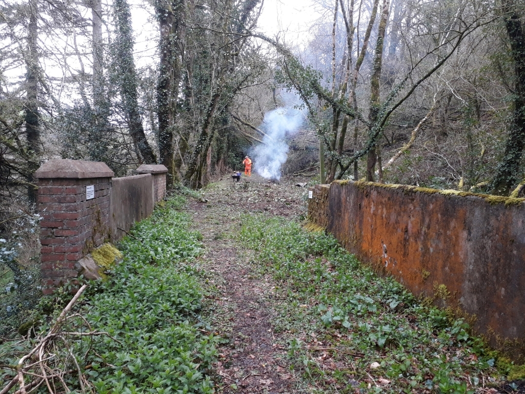 3. A view looking north looking along the trackbed from Goodleigh Road Bridge. Approximately 30 metres was cleared this week. More clearance may take place later this year and over the winter as part of the maintenance programme for this stretch of trackbed.