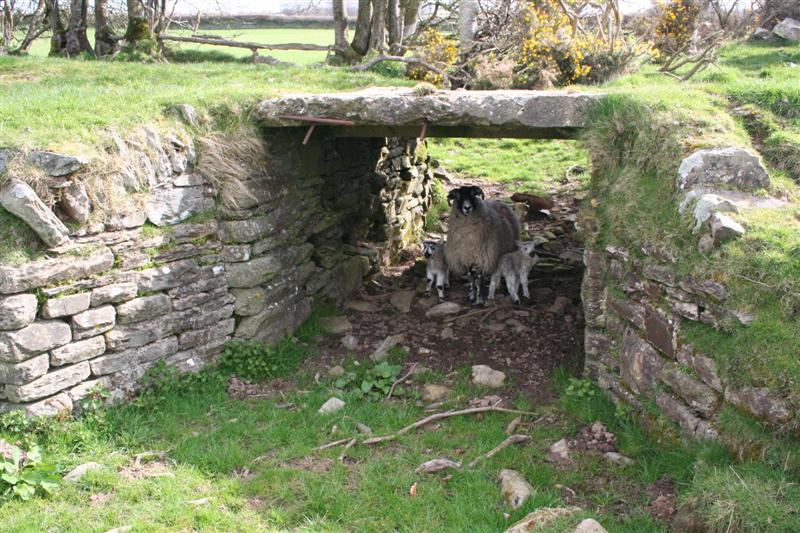 4. A ewe and her lambs 'shelter' under the remains of cattle creep, bridge 64