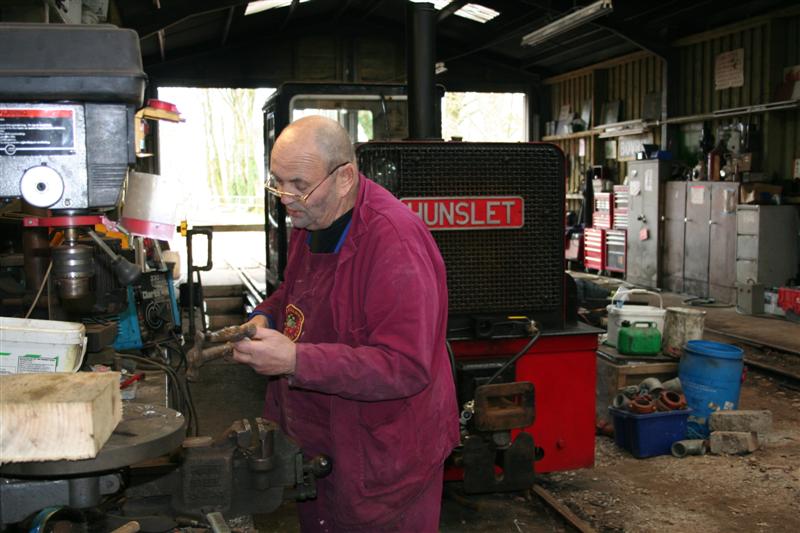 12. Richard Burgess, back in action, repairing some hand tools in the shed