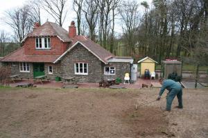 10. Hugh Bland rakes out the levelled and reseeded upper lawn area