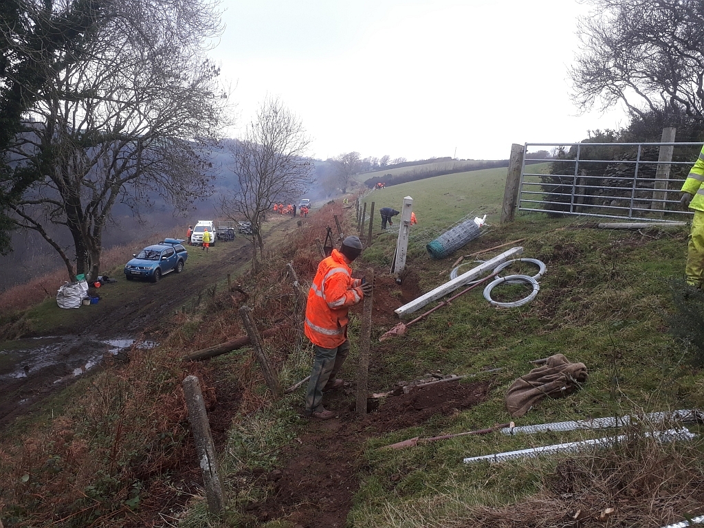 The main task for the weekend was to begin the reinstatement of almost ½ mile of fencing and this comprised: