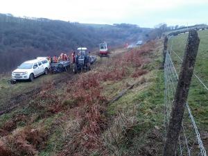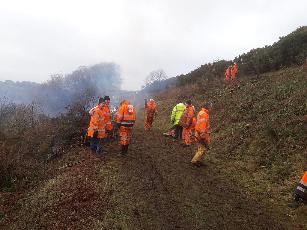 Despite challenging weather on the Friday and Saturday with heavy rain at times, the mass of 40+ volunteers made some excellent progress with the scrub clearance and fencing projects along the L&BR' s latest purchase of trackbed between Dean Steep and Barbrook. It was dry on the Sunday and with another great turnout of volunteers the 'Welsh/ Northern" side was completely refenced to allow stock grazing as required by our local friendly farmers.