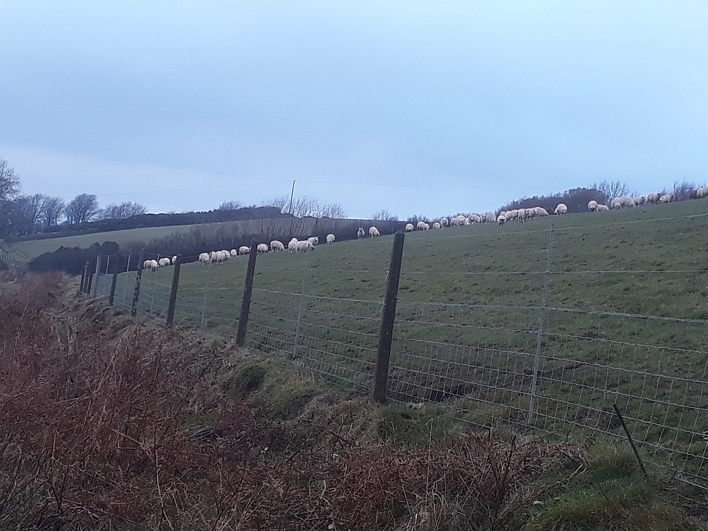 By the afternoon tea break at 3pm a flock of sheep appeared in the field above the trackbed. They were naturally curious as to all the human activity below and we all commented that no doubt they will 'test' the new fence later as soon as everyone has gone home.