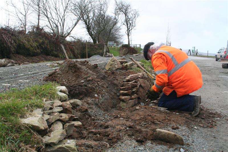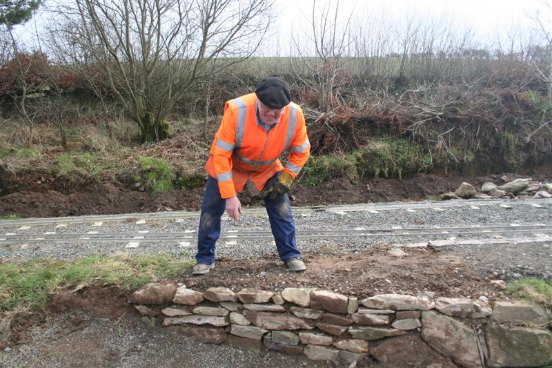 8. Robin Edwards fits some stone walling to the bank below the miniature railway.