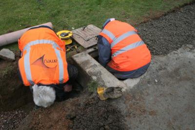 2. Whats happening here? Jim and Dave somehow have to drill a hole inside the manhole to take the new drainage path.