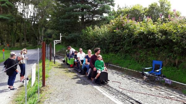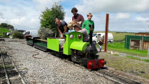 7. Claire Jeans operated the miniature railway again today. Another trip returns to the station with a family on board. The miniature railway carried over a 100 people yesterday and another 72 today.