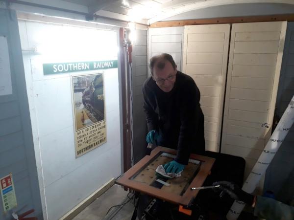 12. Barrie Cann returns this week after a New Year holiday to resume his varnishing of more coats onto the droplight windows of Carriage No.17.