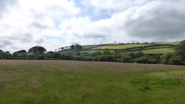 14. This apparently unexciting view is of the area of Rowley Moor Farm on which the (large) new engine and rolling stock sheds are to be built. The low hedge to the left of the picture borders Blackmoor Gate Car Park while the trackbed runs along the line of trees from the middle of the picture to the right hand side.