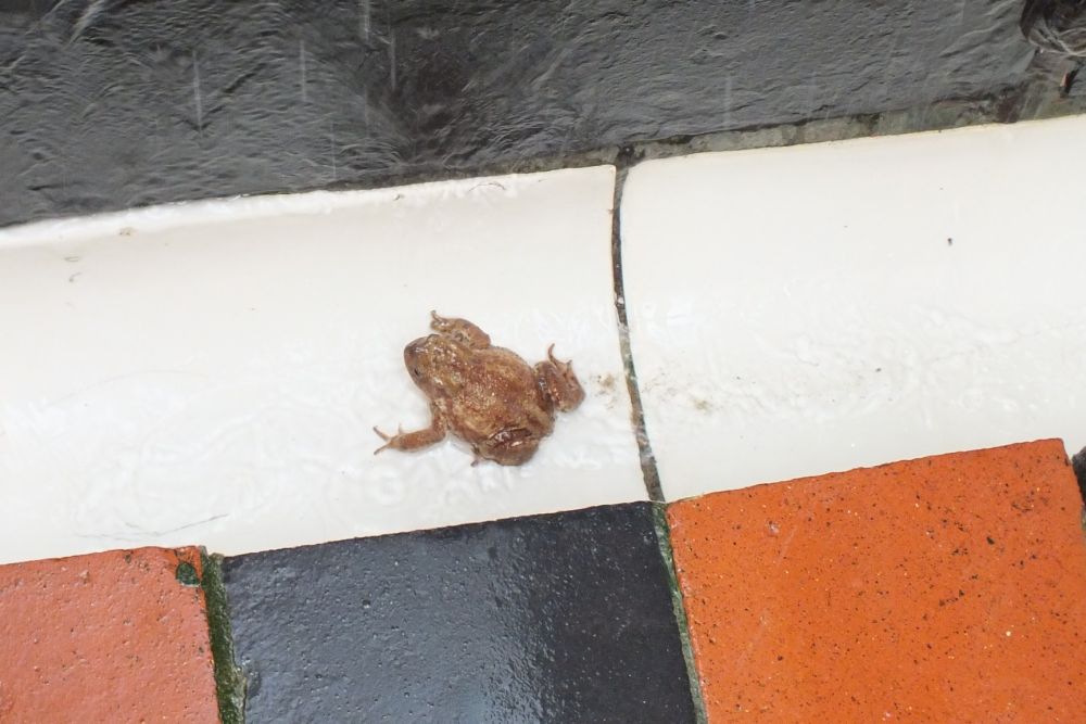 5. Once in the safe hands of Dave Took, the toad was released in the woods.