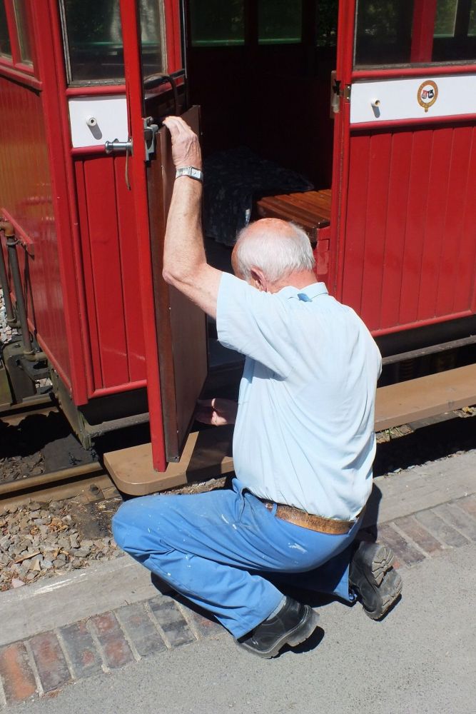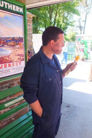 A glorious day at Woody Bay saw a busy railway with a steady stream of visitors, including two visiting tourist coaches. Judy and the other Tea Room staff were kept busy, as was "Tuesday regular" John Hedderly who surprisingly was in the shop today where quite a few ice creams were sold.