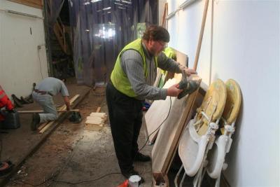 4. Phil Rawstron with the sander smoothing off the edges of the boards.