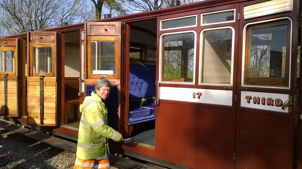 1. Dave Evans will be a regular guard again this year. Today Dave cleaned heritage carriage No. 17 which has been overhauled this winter and will form the one-coach-train used during the half-term week.