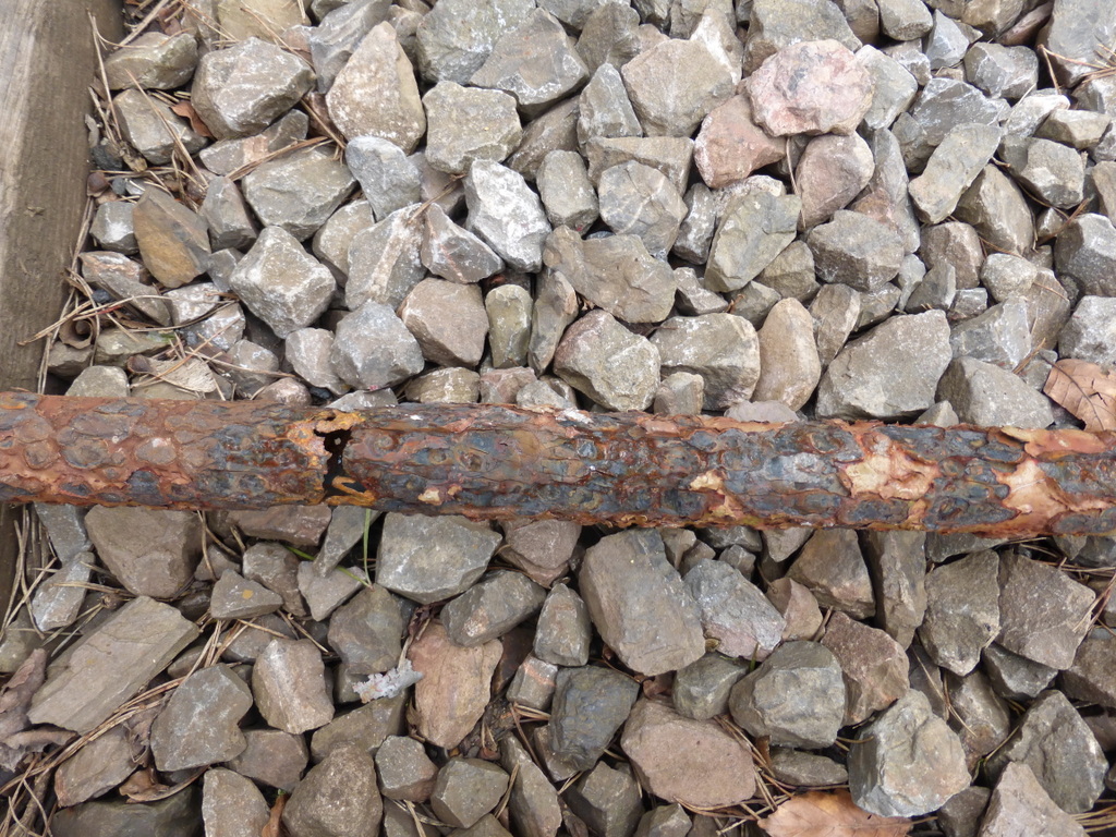 1 and 2. On the left an example of the corroded rodding and the new galvanised replacement rodding.