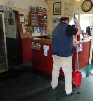 12 and 13. In the station building - the Tea-Room was cleared of furniture so that our contract cleaners could thoroughly clean the Tea-Room and shop floors in advance of the coming season.