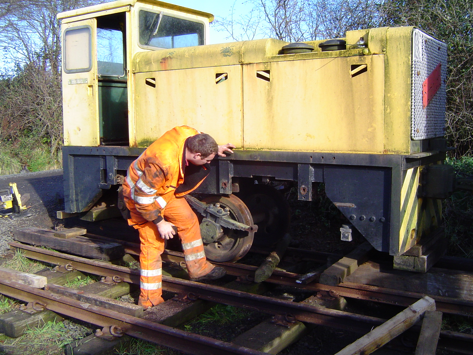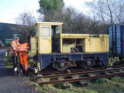 To coincide with this visit, it was decided to start work on re-gauging the wheels on a Hunslet 60hp diesel loco which we have had in store for over 3 years. This loco, works number 6652, built in 1965, is a twin of HEDDON HALL (works number 6660). 6652 was built to 2 foot 6 inch gauge, and ran at Dean Hill. When that MoD facility closed, it was briefly on display at the “Explosion” museum in Gosport, before being purchased for use on the L&B.