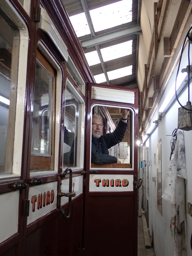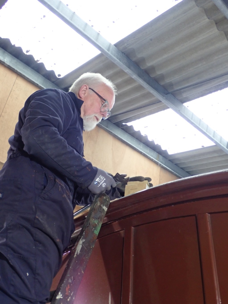 5. & 6. In the paint shop Geoff continued his painting efforts while Jim completed the renovation of the lamp fittings on the roof.