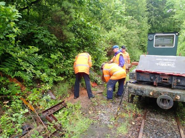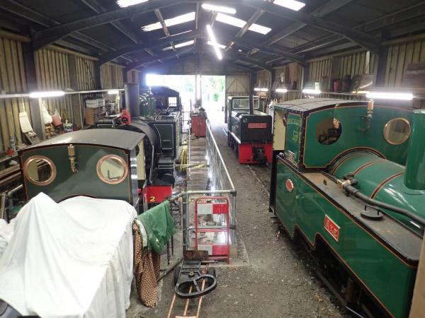 4. FAITH, LYN, AXE and HEDDON HALL all stabled in the shed. In the middle foreground is a cast spectacle plate for a semaphore signal which has been renovated.