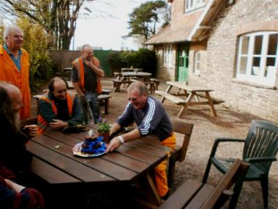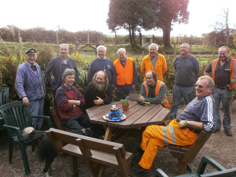 11. All the volunteers on site today gather to present regular Thursday volunteer, Richard Willey (seated right) with a 70th Birthday cake.