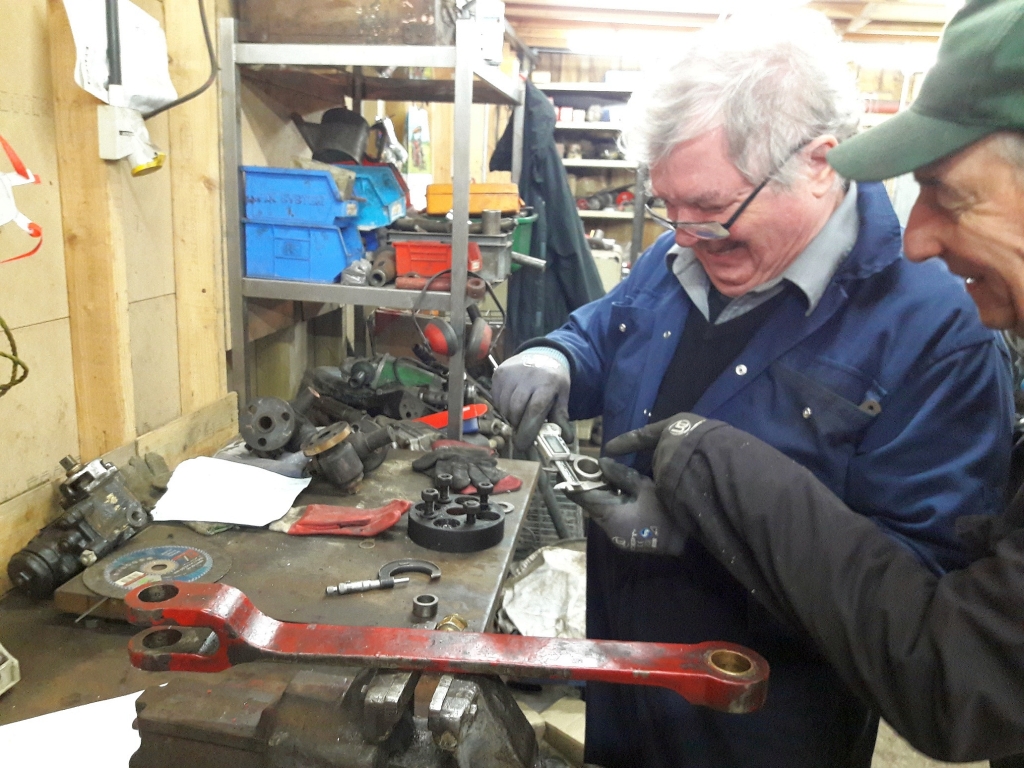 12. In the workshop, Peter Wainwright makes a new bearing bush for ISAAC's motion as part of the winter work schedule.