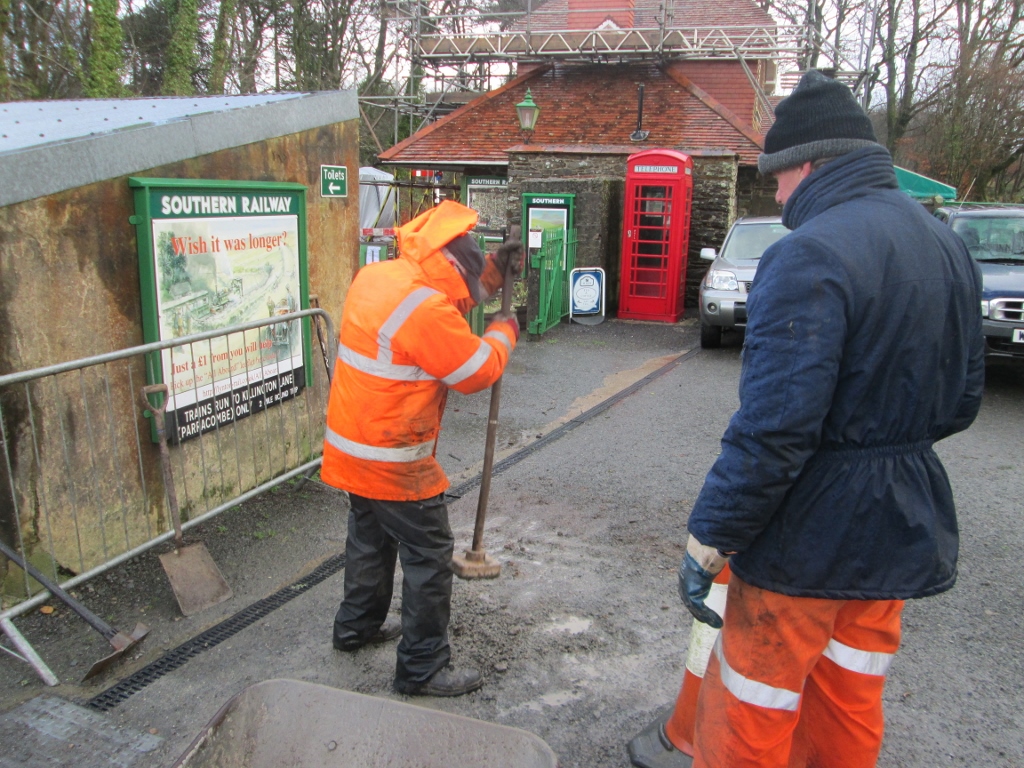 3. Just one storm damage repair today: Jim Pounds and Dave Robinson dug out, refilled and tamped down a small area by the stable which had slightly subsided.