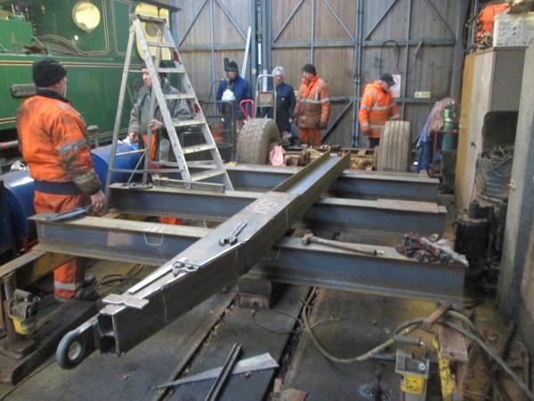 7. In the shed, the engineering team were busy rebuilding the plant trailer with a new and stronger steel frame. When finished the trailer will then be useful not only for transporting the excavator but also wagons and other rail equipment.