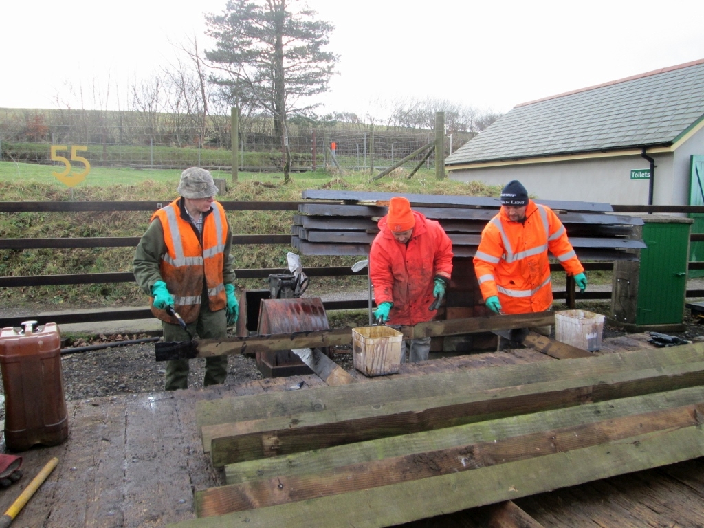 11. Many of the Thursday Gang took turns at creocoting the Arris rails destined for the occupation crossings near Killington Lane.