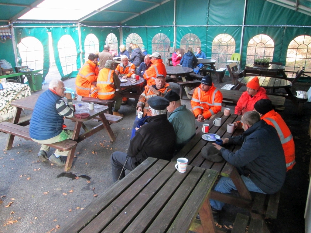 12. With the Tea-Rooms busy this afternoon, the volunteers still manage the traditional 3pm tea and cake break in the marquee.