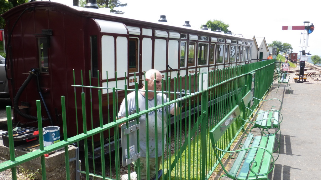 9. While waiting for the train back down to Killington Lane after a break for lunch, the gang were pleased to catch up with Dave Bloomfield (seated) who is recovering from recent surgery.