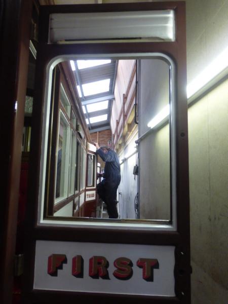 15. Also in the shed, Jim Pounds and Barrie Cann continued their “First Class” coach painting.