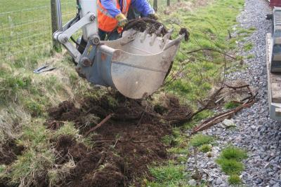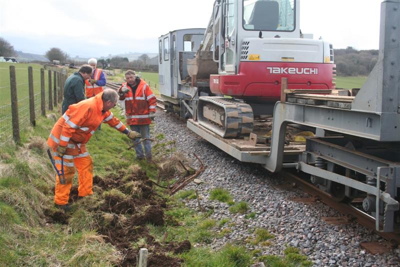8. The digger operating off the well wagon was also used to remove several half-buried rolls of fencing wire by the lineside.