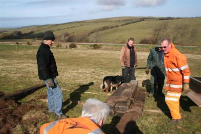 1. First job today was to sort out several crossing timbers (long sleepers used on turnouts) which had been stored in the overflow car park field.