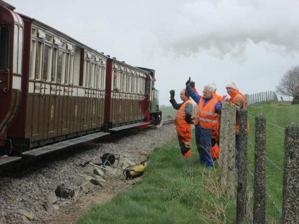 9. ISAAC backs onto the train at Killington Lane. The Thursday Gang were treated to a ride back to Woody Bay after completing the fishplate greasing.