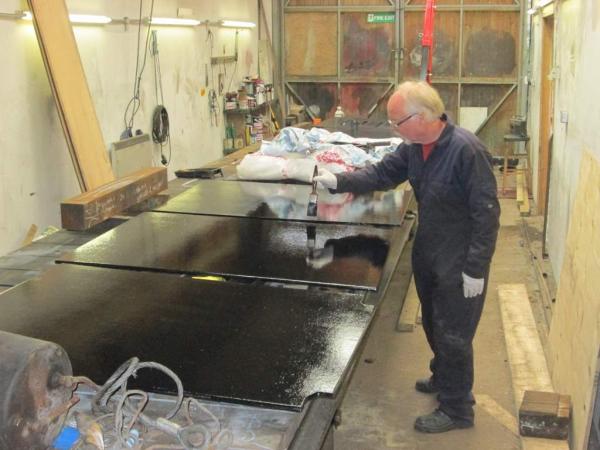 14. Jim Pounds paints more top coat onto PILTON's new side panels.