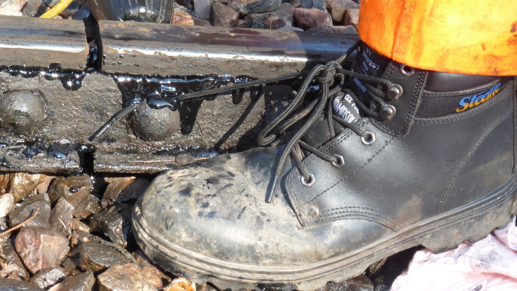 4. Mike got very attached to the job - by managing to bolt his bootlace to the fishplate!