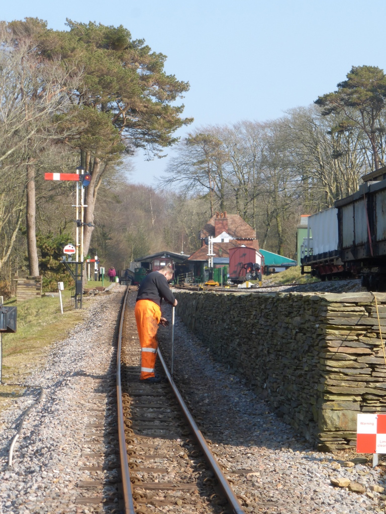 Spring has sprung, so time again to begin the annual fishplate greasing on a perfect spring day at Woody Bay Station.