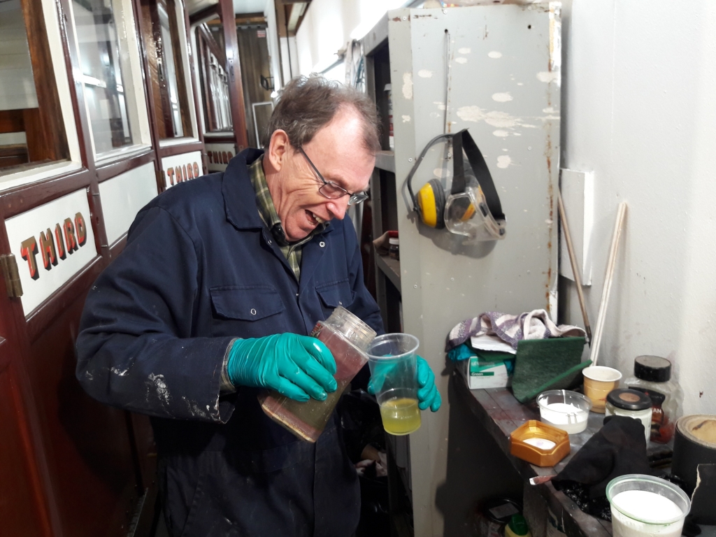 4. In the paint shop Barrie Cann is mixing up an interesting looking potion. No it's not cider!
