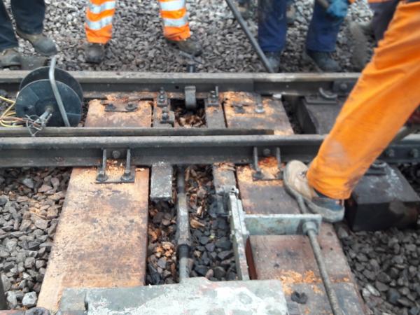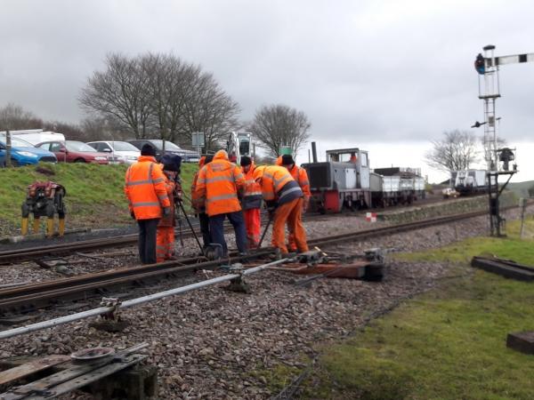 1. A new sleeper is slid into place at the Barnstaple end of the turnout.